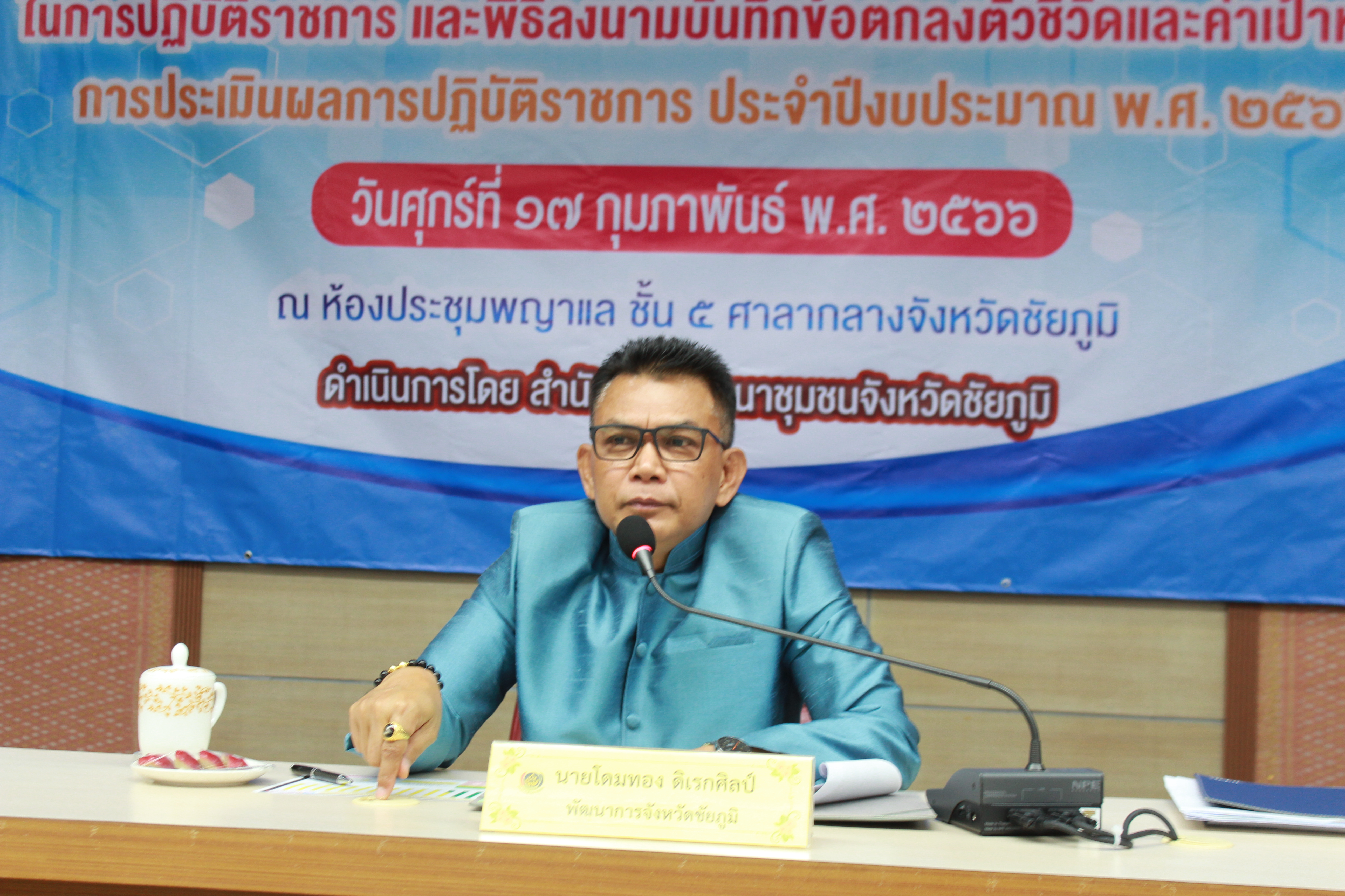 –>> 1. มอบแนวทางการขับเคลื่อนงานพัฒนาชุมชน ตามตัวชี้วัดและภารกิจสำคัญของกรมการพัฒนาชุมชน ประจำปีงบประมาณ พ.ศ. 2566 โดย นายโดมทอง ดิเรกศิลป์ พัฒนาการจังหวัดชัยภูมิ