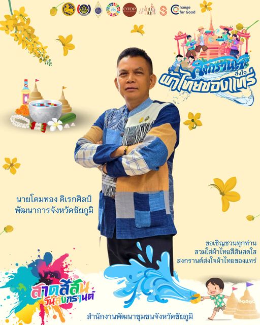สำนักงานพัฒนาชุมชนจังหวัดชัยภูมิ ขอเชิญชวนทุกท่านร่วม “สืบสาน ผ้าถิ่นไทย ไปกับพช.” ผ่านแคมเปญ “สงกรานต์ ส่งใจ ผ้าไทย ของแทร่”