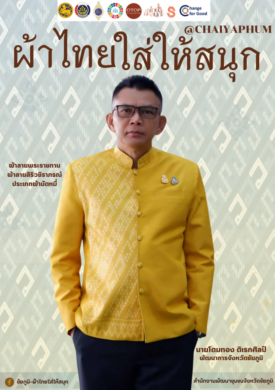ขอเชิญชวนร่วมสวมใส่ “ผ้าไทยใส่ให้สนุก” ทุกวัน เพื่อสืบสานพระราชปณิธาน สมเด็จพระนางเจ้าสิริกิติ์ พระบรมราชินีนาถ พระบรมราชชนนีพันปีหลวง ภายใต้โครงการ สืบสาน อนุรักษ์ศิลป์ผ้าถิ่นไทย ดำรงไว้ในแผ่นดิน ส่งเสริมและสืบสานความเป็นไทย ด้วยการใช้และสวมใส่ผ้าไทยให้สนุกในทุกโอกาส เพื่อส่งเสริมและเผยแพร่อัตลักษณ์ผ้าไทยให้คงอยู่ อันเป็นค่านิยมด้านการรักษาวัฒนธรรมประเพณีไทยอันดีงาม กระตุ้นเศรษฐกิจฐานรากให้รายได้กระจายสู่ชุมชน ชุมชนพึ่งตนเองได้อย่างยั่งยืน