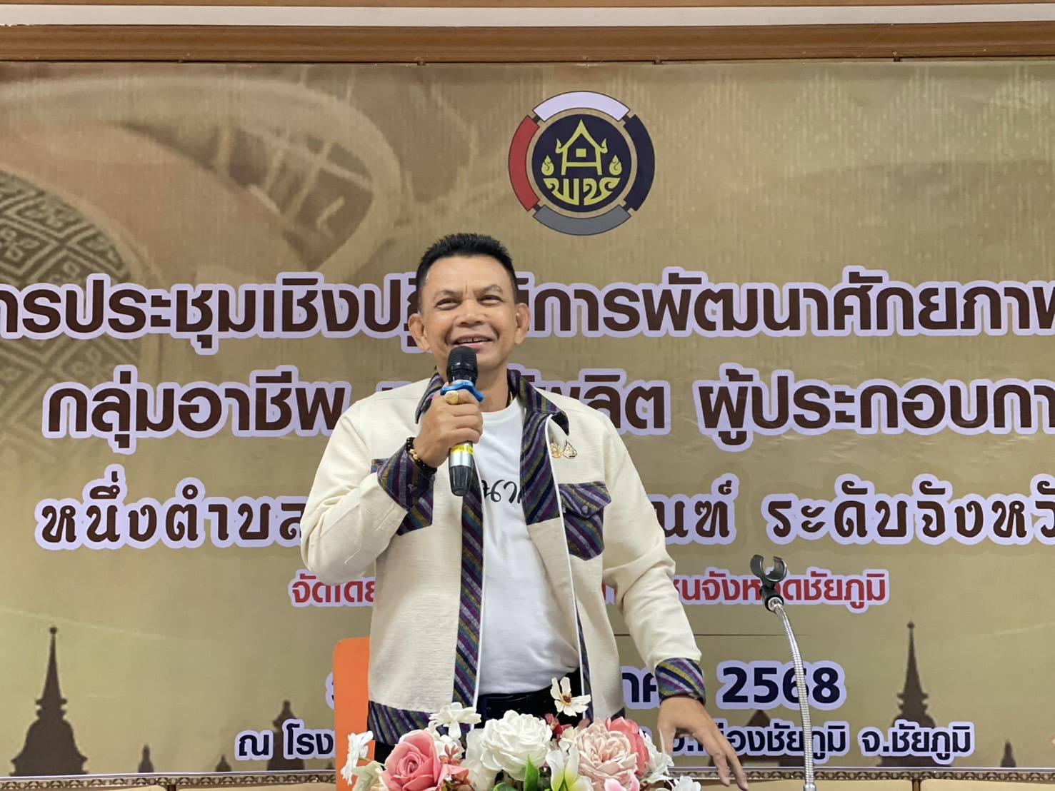 นายโดมทอง ดิเรกศิลป์ พัฒนาการจังหวัดชัยภูมิ เป็นประธานในพิธีเปิดการระชุมเชิงปฏิบัติการพัฒนาศักยภาพเครือข่ายกลุ่มอาชีพ และผู้ผลิต ผู้ประกอบการ หนึ่งตำบล หนึ่งผลิตภัณฑ์ ระดับจังหวัด และบรรยายสร้างความรู้ ความเข้าใจแก่คณะกรรมการเครือข่ายกลุ่มอาชีพ และผู้ผลิต ผู้ประกอบการ หนึ่งตำบล หนึ่งผลิตภัณฑ์ จังหวัดชัยภูมิ ในหัวข้อ “