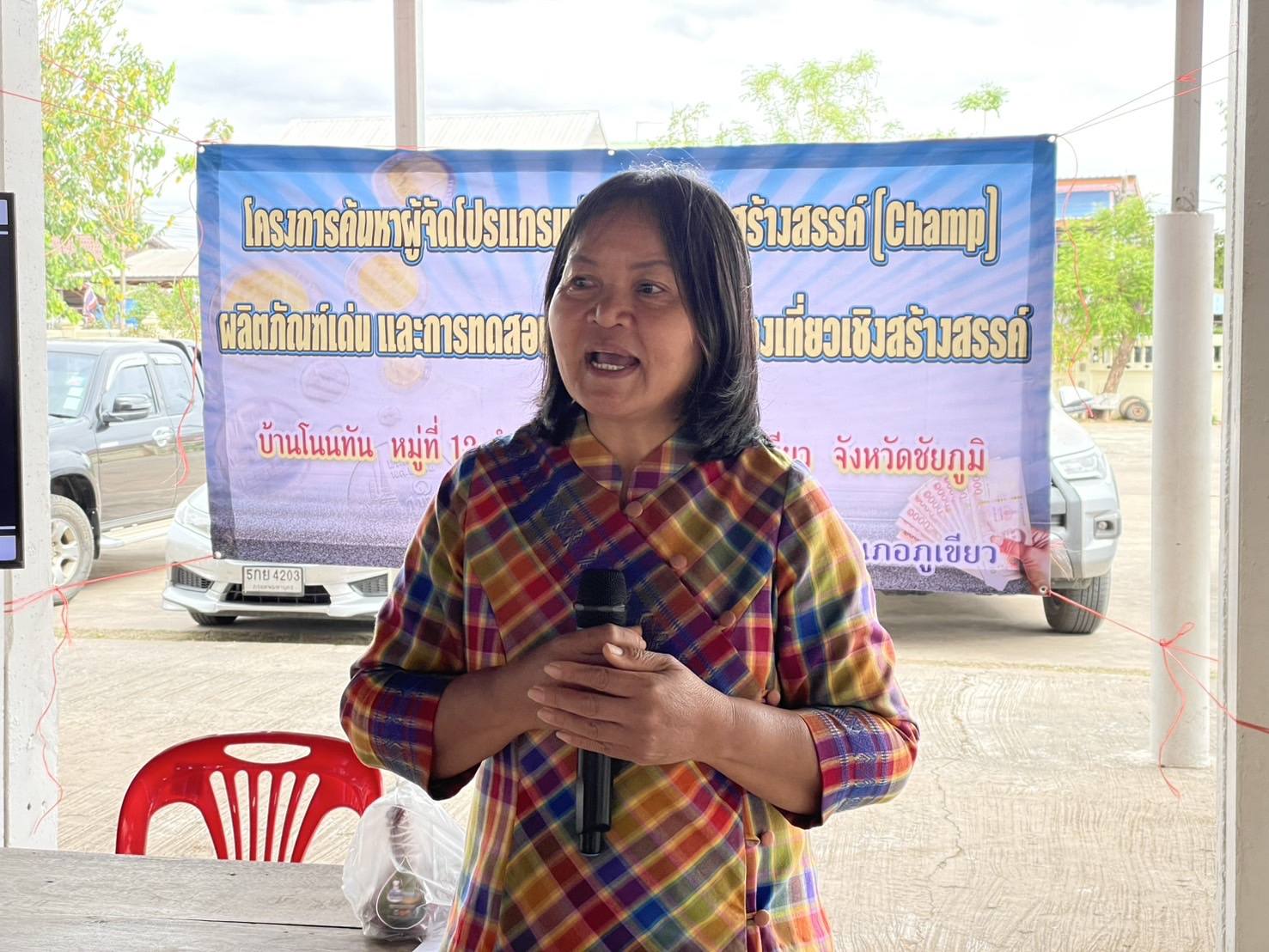นายโดมทอง ดิเรกศิลป์ พัฒนาการจังหวัดชัยภูมิ มอบหมายให้นางสาวมยุรินทร์ พันสนิท นักวิชาการพัฒนาชุมชนชำนาญการ ลงพื้นที่เป็นวิทยากรและสนับสนุนการดำเนินโครงการส่งเสริมการท่องเที่ยวเชิงสร้างสรรค์ กิจกรรมย่อยที่ 1.1 ค้นหาผู้จัดโปรแกรมท่องเที่ยวเชิงสร้างสรรค์ (Champ) ผลิตภัณฑ์เด่นและทดสอบโปรแกรมท่องเที่ยวเชิงสร้างสรรค์ โดยมีวัตถุประสงค์สนับสนุนการจัดทำโปรแกรมการท่องเที่ยวเพื่อถ่ายทอดองค์ความรู้และรูปแบบกิจกรรมส่งเสริมการเรียนรู้ที่นักท่องเที่ยวลงมือปฏิบัติ (D-HOPE) บ้านโนนเสลา-โนนทัน หมู่ที่ 12 ตำบลหนองตูม อำเภอภูเขียว จังหวัดชัยภูมิ กลุ่มเป้าหมายประกอบด้วยผู้ผลิต ผู้ประกอบการชุมชน (Champ) ผู้นำชุมชน เจ้าของผลิตภัณฑ์เด่น จำนวน 20 คน เข้าร่วมกิจกรรม