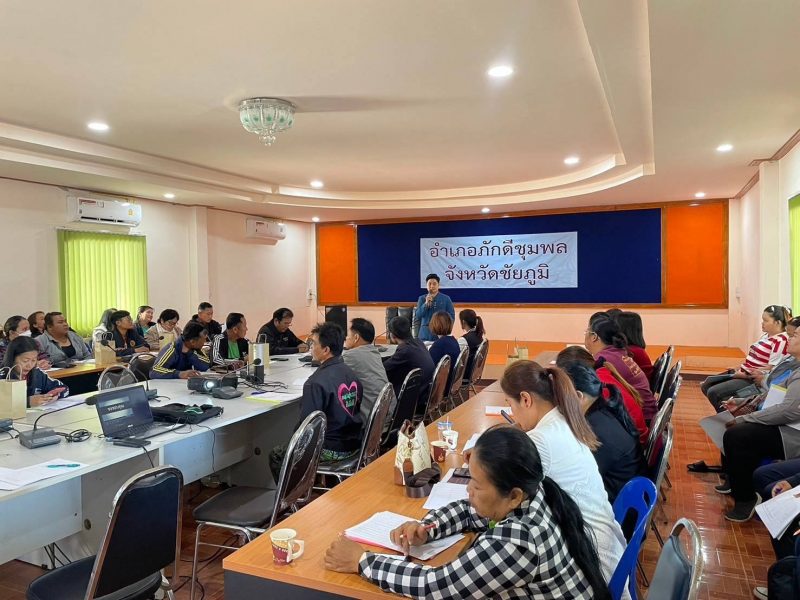 พช.ชัยภูมิ ร่วมประชุมชี้แจงการจัดเก็บข้อมูลความจำเป็นพื้นฐาน (จปฐ.) ด้วยเครื่องมืออิเล็กทรอนิกส์ ประจำปี 2568 แก่อาสาสมัครจัดเก็บข้อมูล จปฐ.อำเภอภักดีชุมพล จังหวัดชัยภูมิ