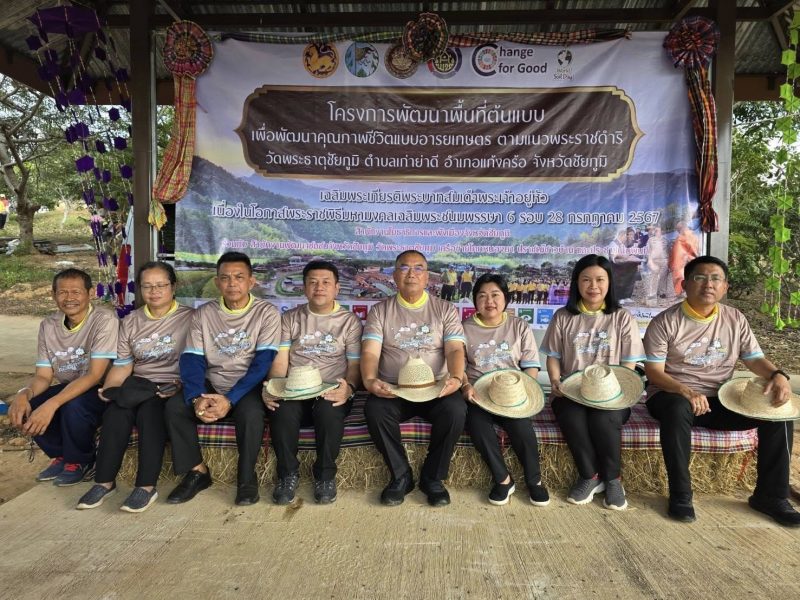 พช.ชัยภูมิ นำเครือข่ายโคกหนองนาพัฒนาชุมชนจังหวัดชัยภูมิ รับมอบสิ่งของพระราชทาน และกิจกรรมเกี่ยวข้าวนาหลวง และปล่อยพันธ์ุปลาโครงการพัฒนาพื้นที่ต้นแบบเพื่อพัฒนาคุณภาพชีวิตแบบอารยเกษตรตามแนวพระราชดําริ บริเวณวัดพระธาตุชัยภูมิ ตำบลเก่าย่าดี อำเภอแก้งคร้อ จังหวัดชัยภูมิ