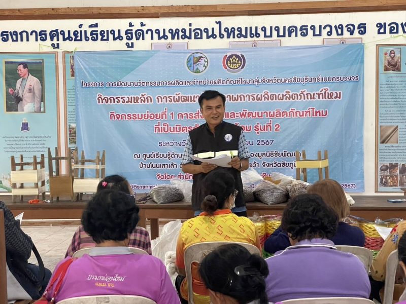 พช.ชัยภูมิ ส่งเสริมการพัฒนาศักยภาพการผลิตผลิตภัณฑ์ไหม กิจกรรมการส่งเสริมและพัฒนาผลิตภัณฑ์ไหมที่เป็นมิตรกับสิ่งแวดล้อม