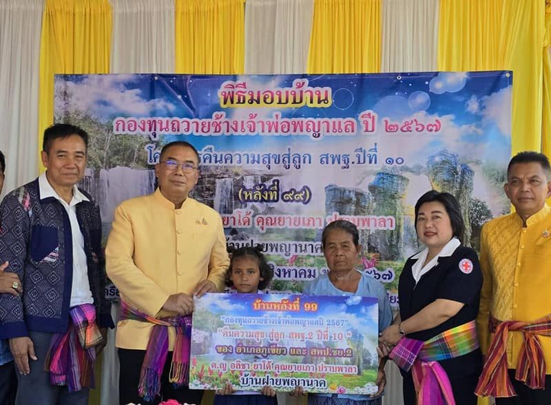 พช.ชัยภูมิ ส่งมอบบ้านกองทุนถวายช้างเจ้าพ่อพญาแล ปี 2567 โครงการบ้านพอเพียง