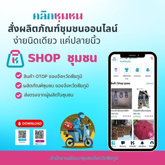 สำนักงานพัฒนาชุมชนจังหวัดชัยภูมิ ขอเชิญชวนทุกท่าน ดาวน์โหลด แอพลิเคชั่น “Click ชุมชน”