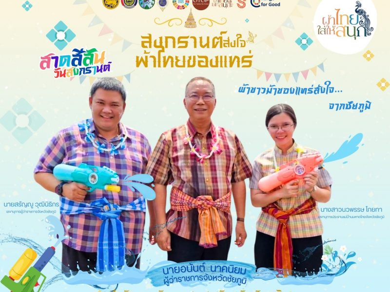 จังหวัดชัยภูมิ ขอเชิญชวนทุกท่านร่วม “สืบสาน ผ้าถิ่นไทย ไปกับ พช.” ผ่านแคมเปญ “สงกรานต์ ส่งใจ ผ้าไทย ของแทร่”