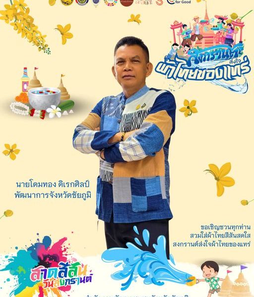 สำนักงานพัฒนาชุมชนจังหวัดชัยภูมิ ขอเชิญชวนทุกท่านร่วม “สืบสาน ผ้าถิ่นไทย ไปกับพช.” ผ่านแคมเปญ “สงกรานต์ ส่งใจ ผ้าไทย ของแทร่”