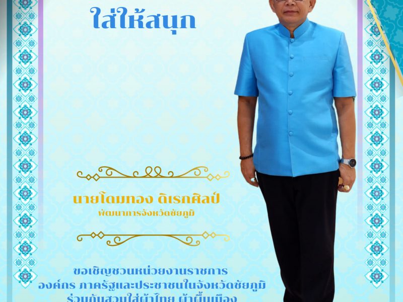 สำนักงานพัฒนาชุมชนจังหวัดชัยภูมิ ขอเชิญชวนร่วมสวมใส่ผ้าไทย